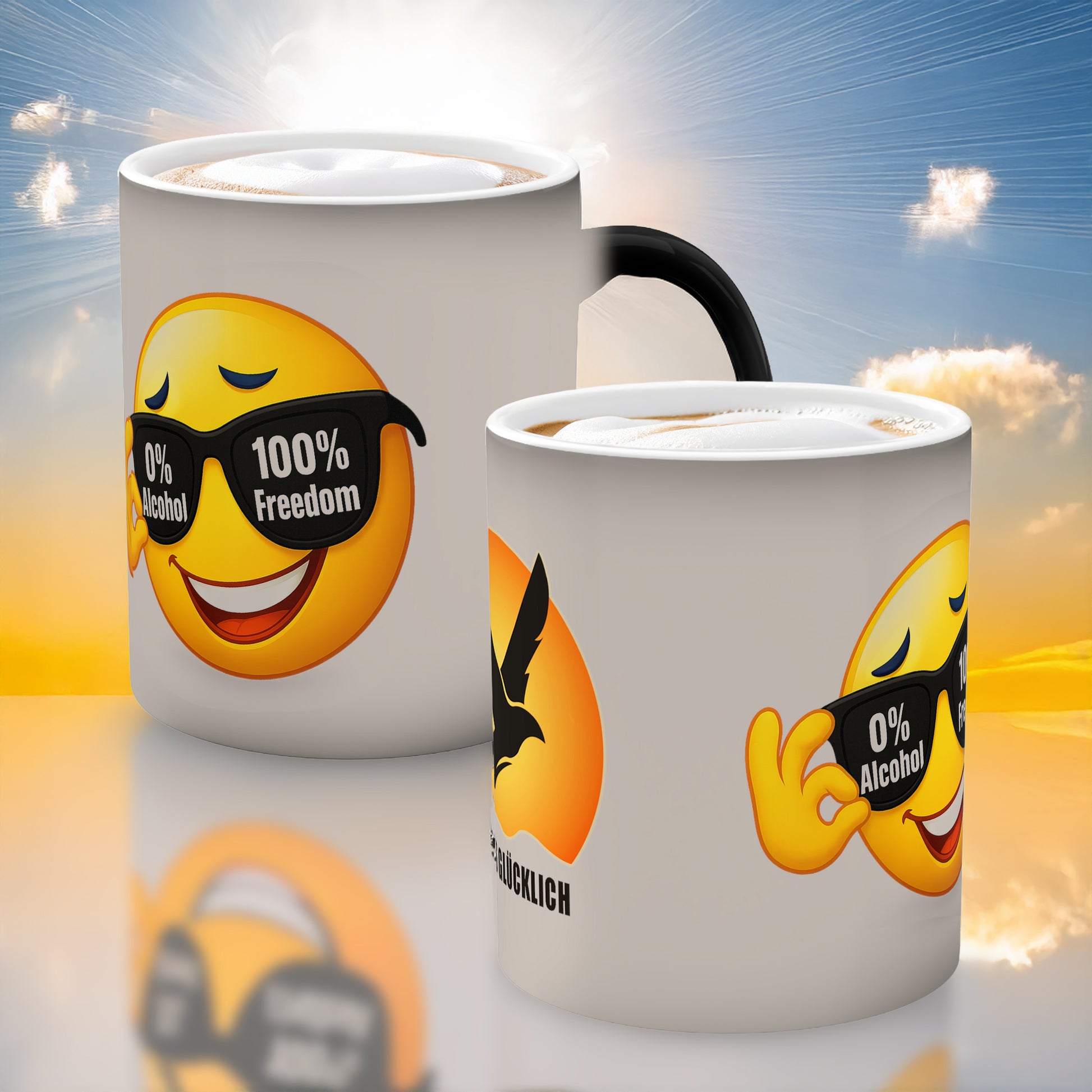 FREIHEIT, DIE SICHTBAR WIRD – Erst beim Eingießen heißer Flüssigkeit erscheint: „0 % Alcohol – 100 % Freedom“. Für alle, die bewusst genießen – und ein klares Zeichen setzen.