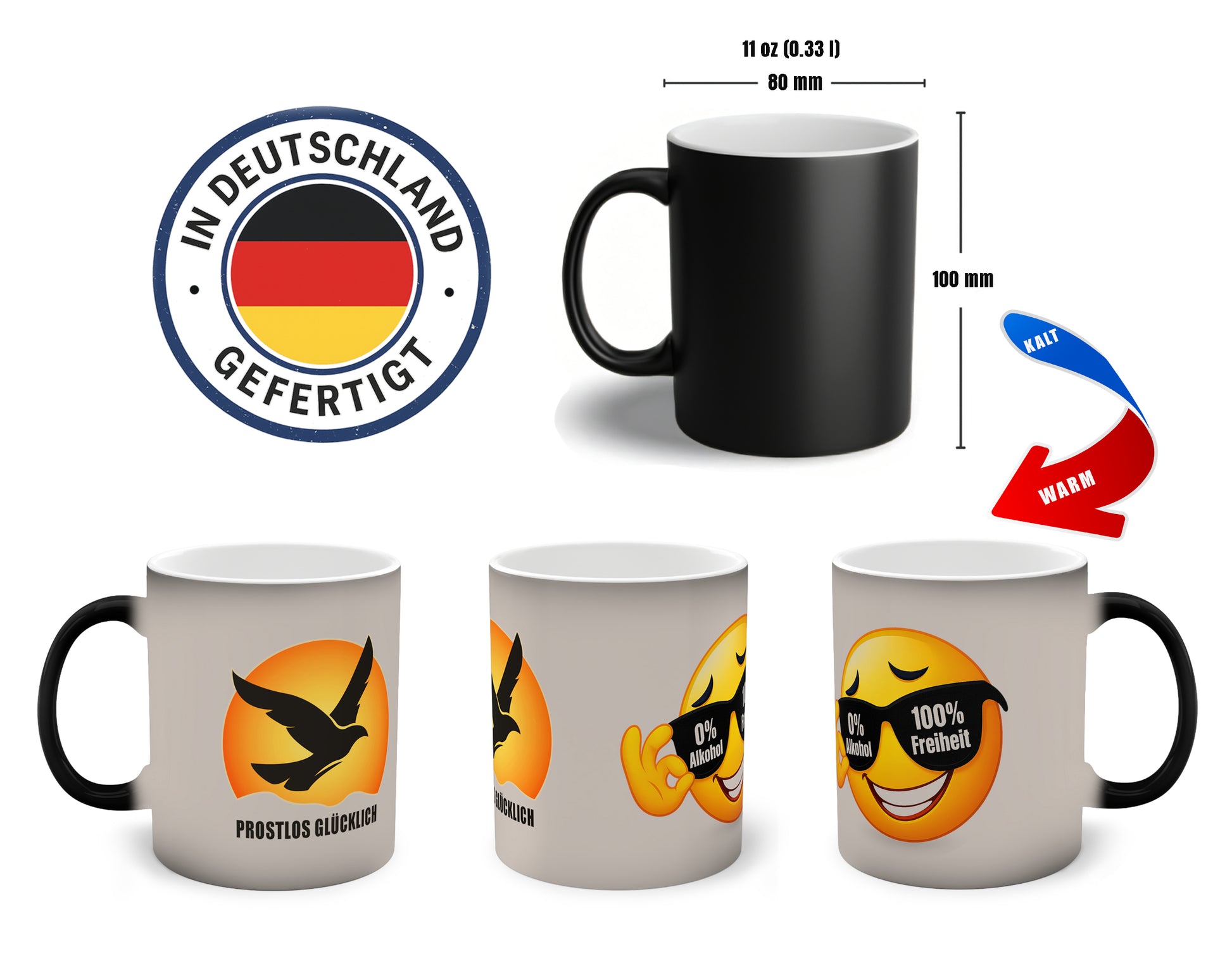 • FREIHEIT, DIE SICHTBAR WIRD – Erst beim Eingießen heißer Flüssigkeit erscheint: „0 % Alkohol – 100 % Freiheit“. Für alle, die bewusst genießen – und ein klares Zeichen setzen.