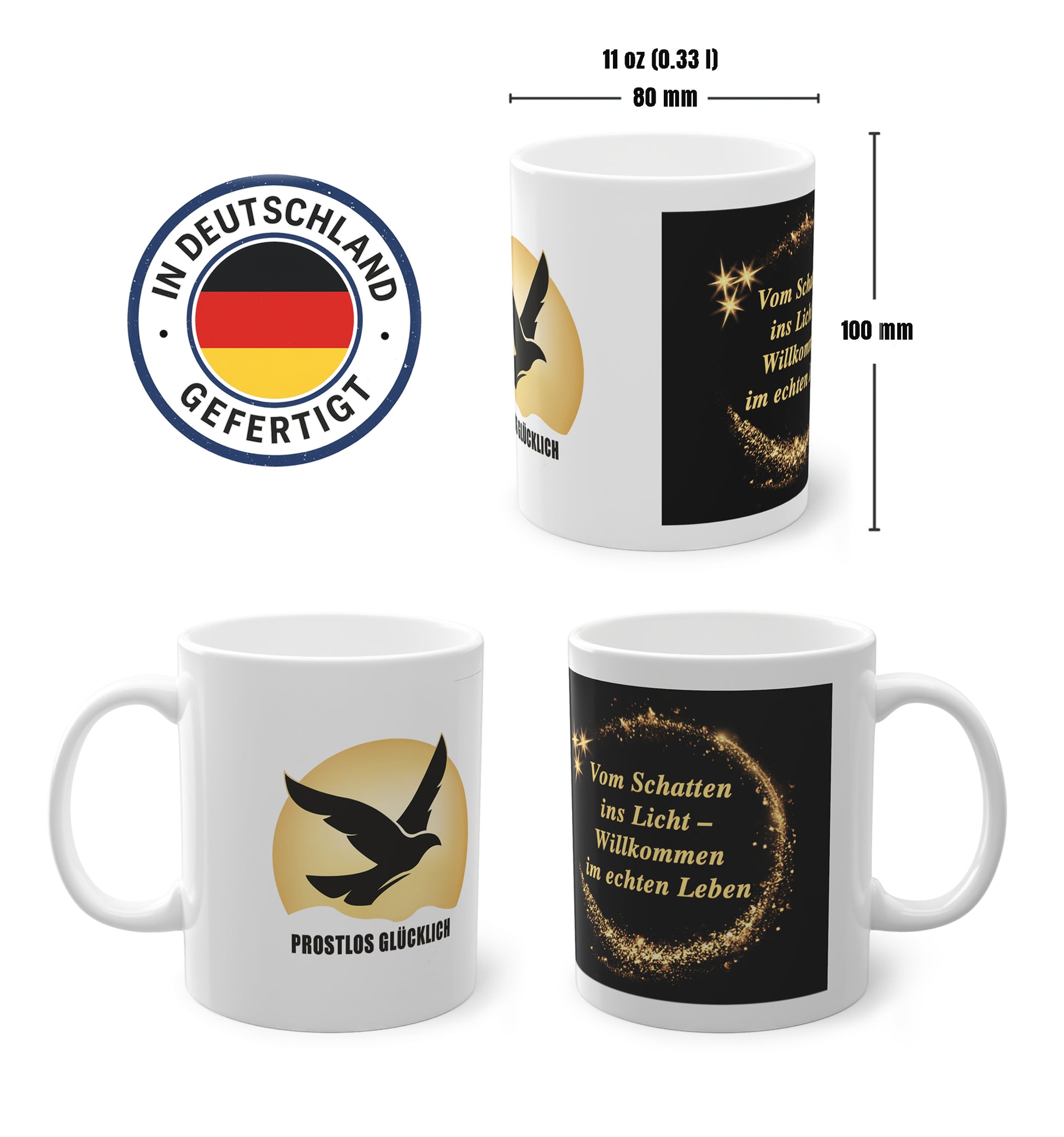• QUALITÄT AUS DEUTSCHLAND – 330ml Keramiktasse, glänzend, robust und hochwertig bedruckt. Langlebig, spülmaschinenfest und gemacht für dein neues Leben.